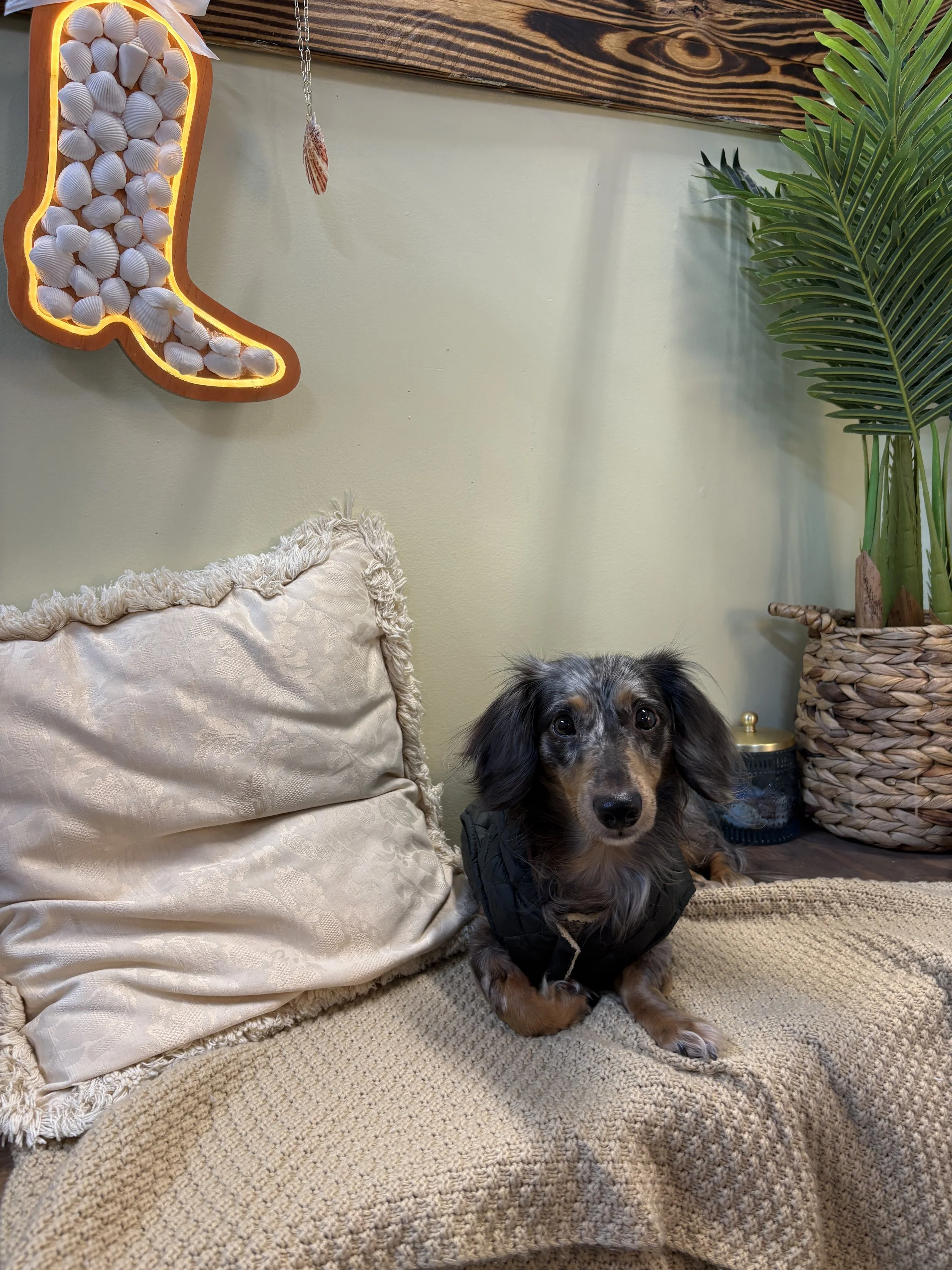 And when you stop by, be sure to say hi to Jett — our beloved paralyzed dachshund mascot who is usually front and center in the booth keeping us company. He takes his job of greeting visitors very seriously.